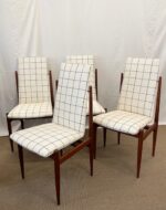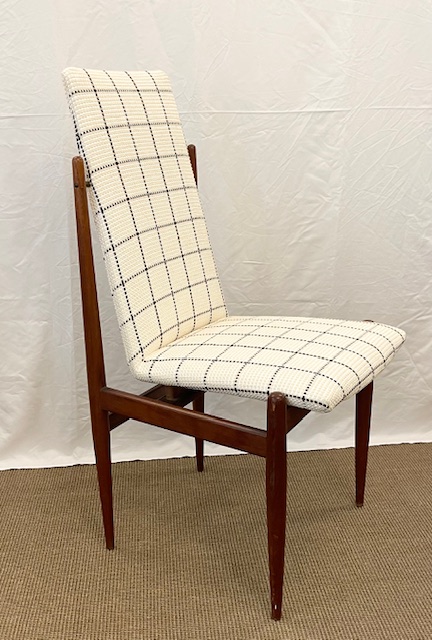 Gruppo di quattro sedie italiane anni ’50 interamente in noce con tappezzeria nuova a quadretti